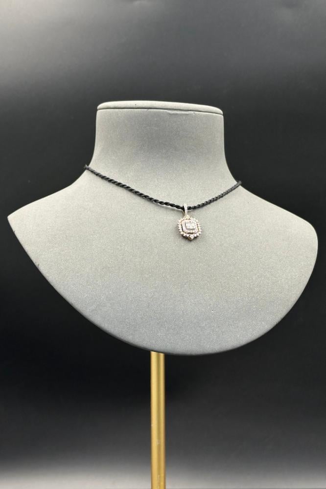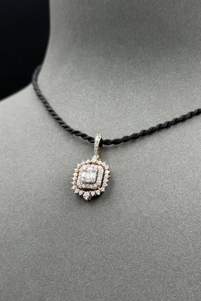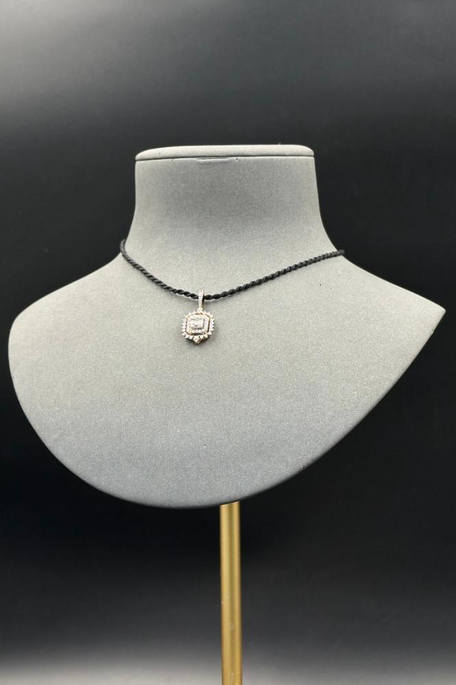 - تعليقة مربع ذهب ابيض مع باقيت تصميم الماس