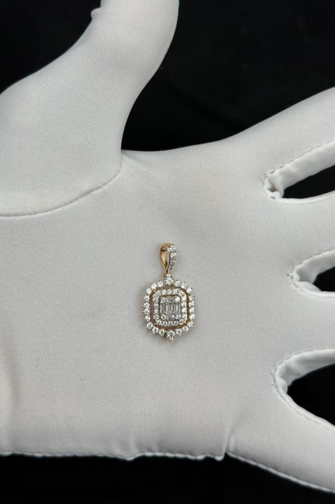 تعليقة مربع ذهب ابيض مع باقيت تصميم الماس عيار 18 وزن 2.6 جرام