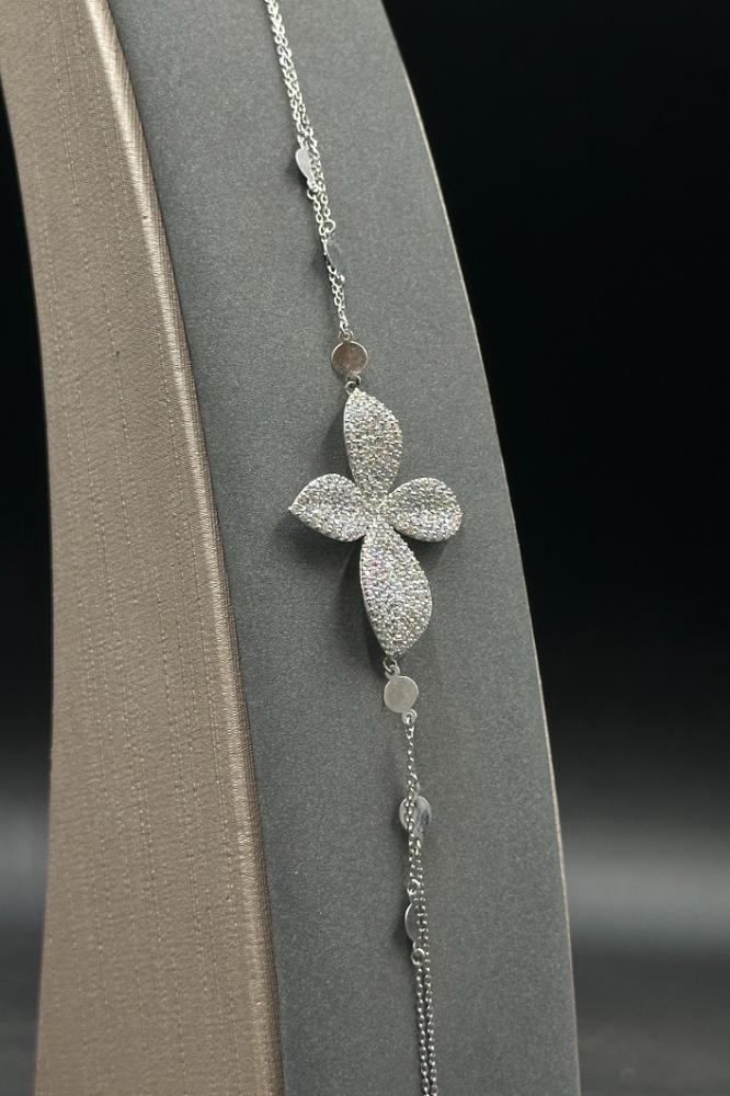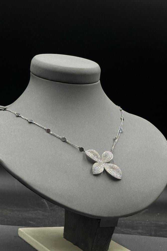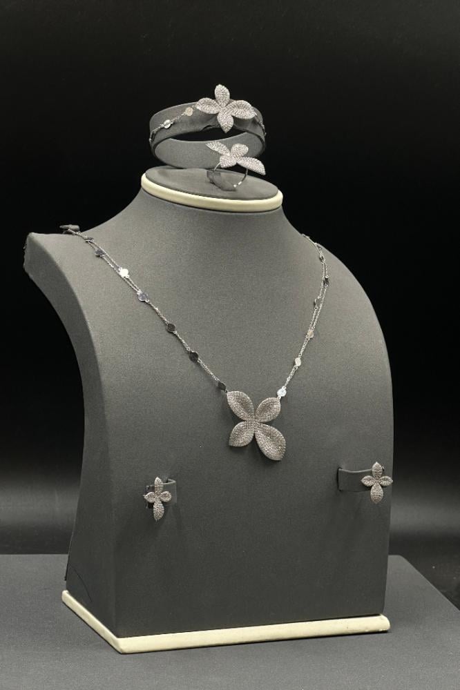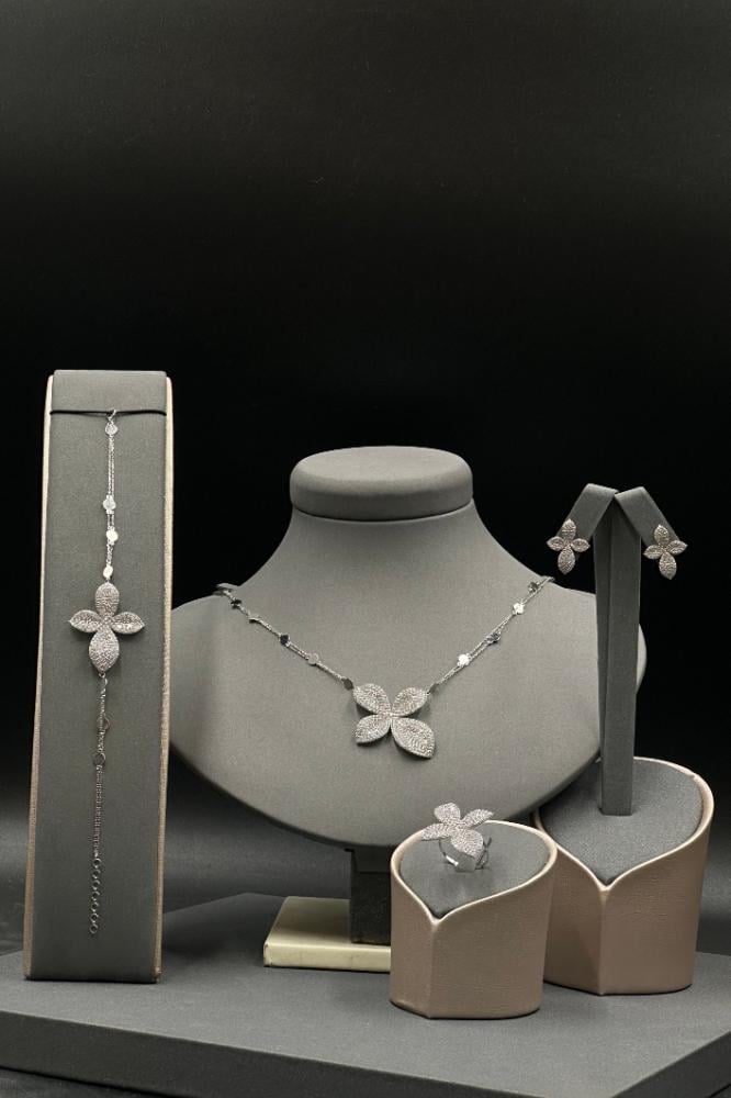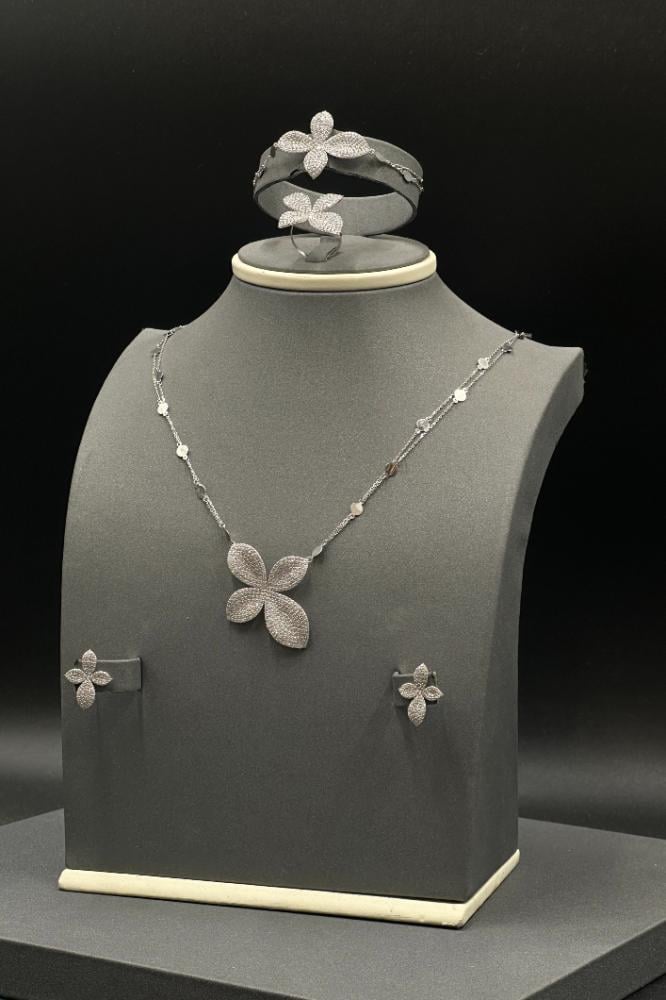 - تألقي مع طقم الذهب الأبيض بتصميم وردة ألماس حجم كبير، عيار 18 بوزن 17.5 جرام، وخلّي إطلالتك دايمًا أنيقة وجذابة.