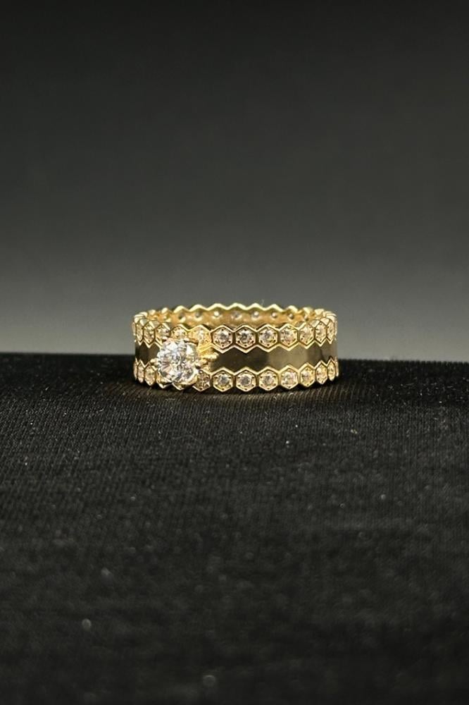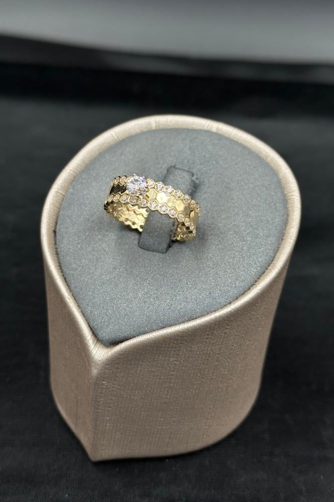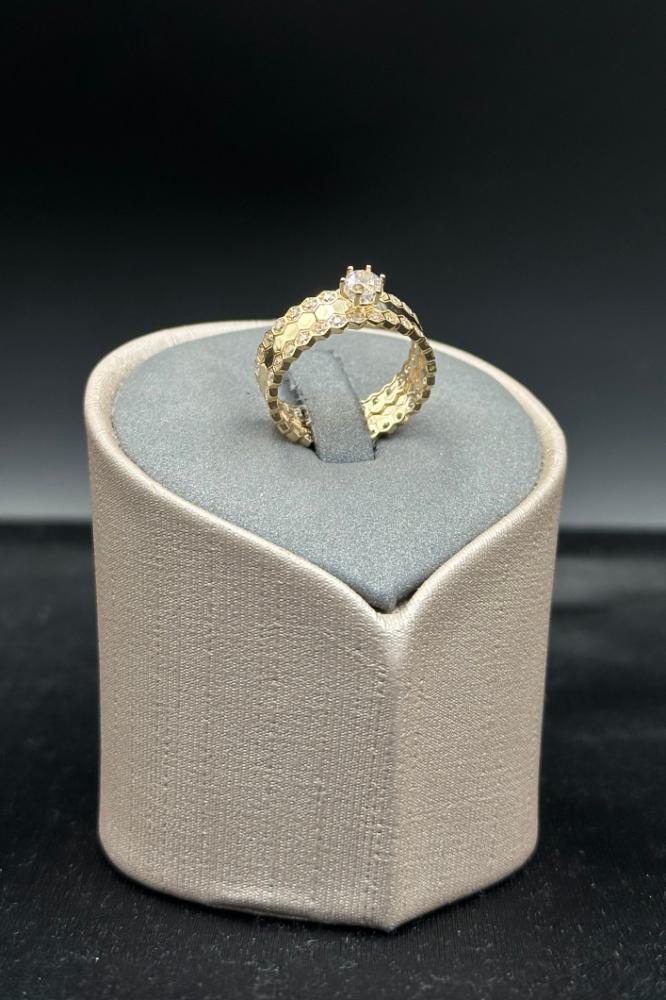 خاتم خلية ذهب تصميم الماس عيار 18 وزن من 3.5 الى 3.8 جرام