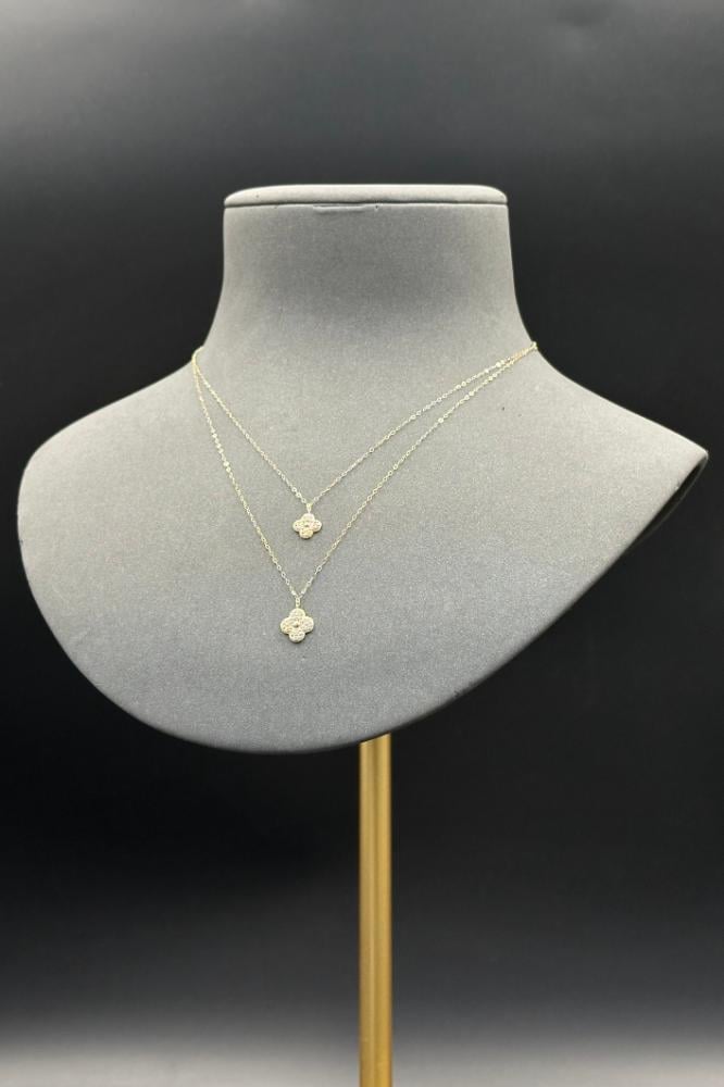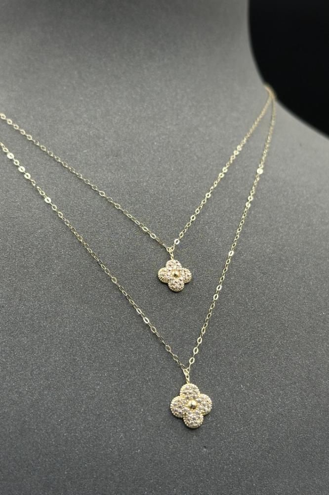 عقد وردة دورين ذهب تصميم الماس عيار 18 وزن من 1.1 الى 1.2 جرام