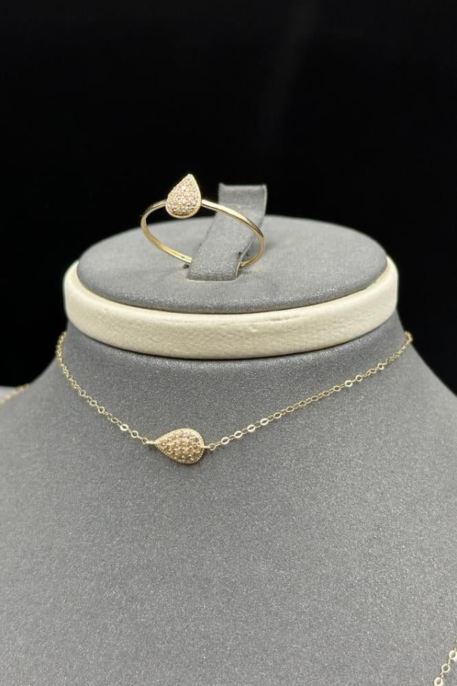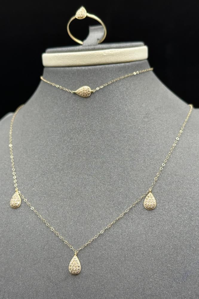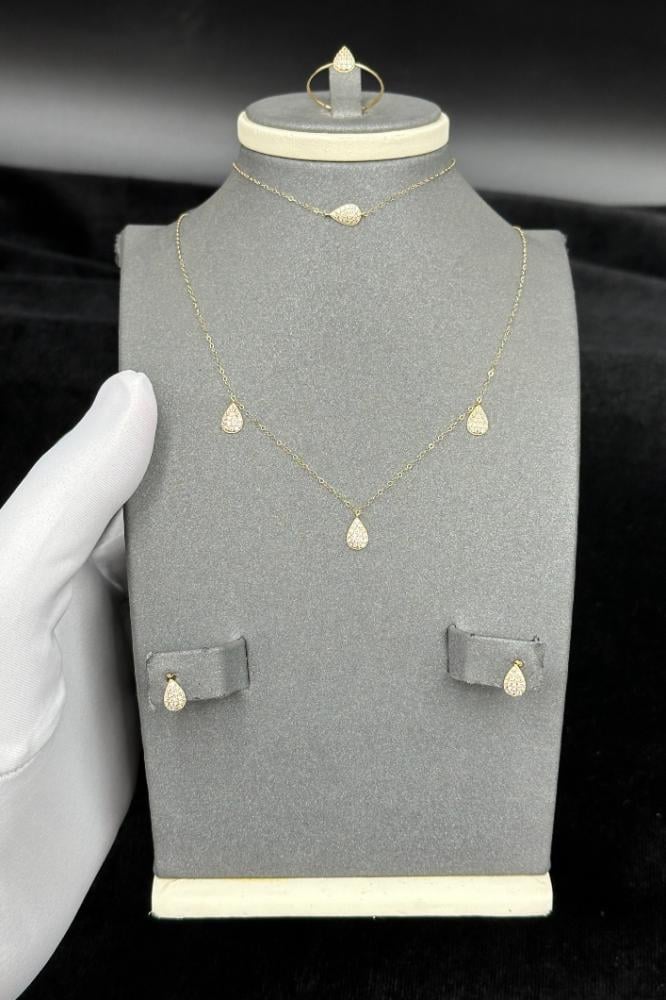 - التصميم: طقم دمعة ذهب تصميم الماس