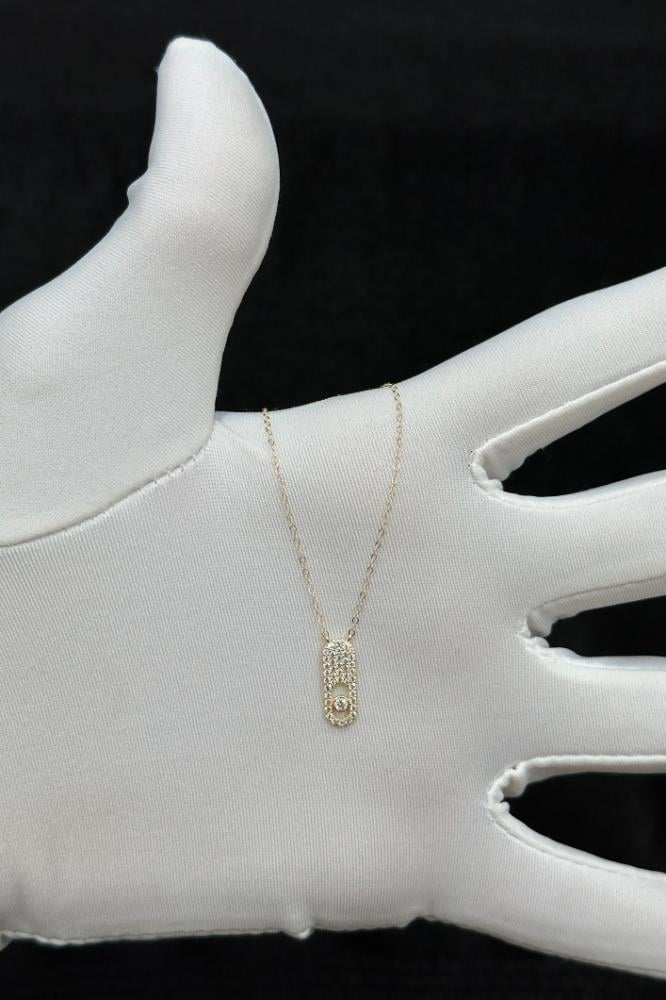 - عقد مستطيل ذهب تصميم الماس