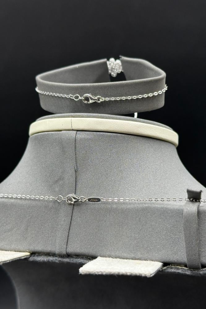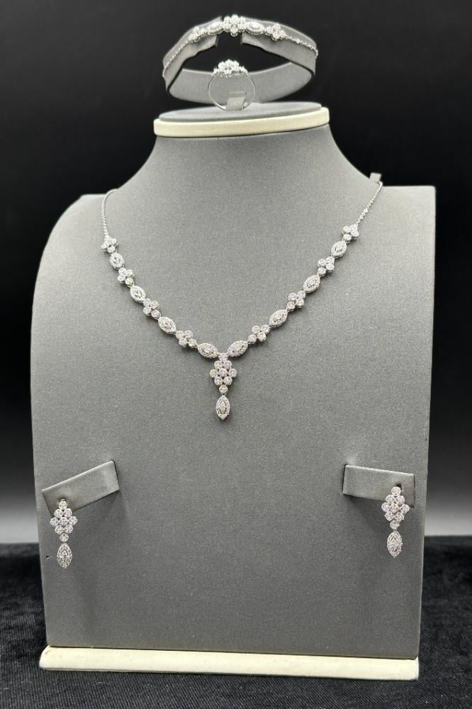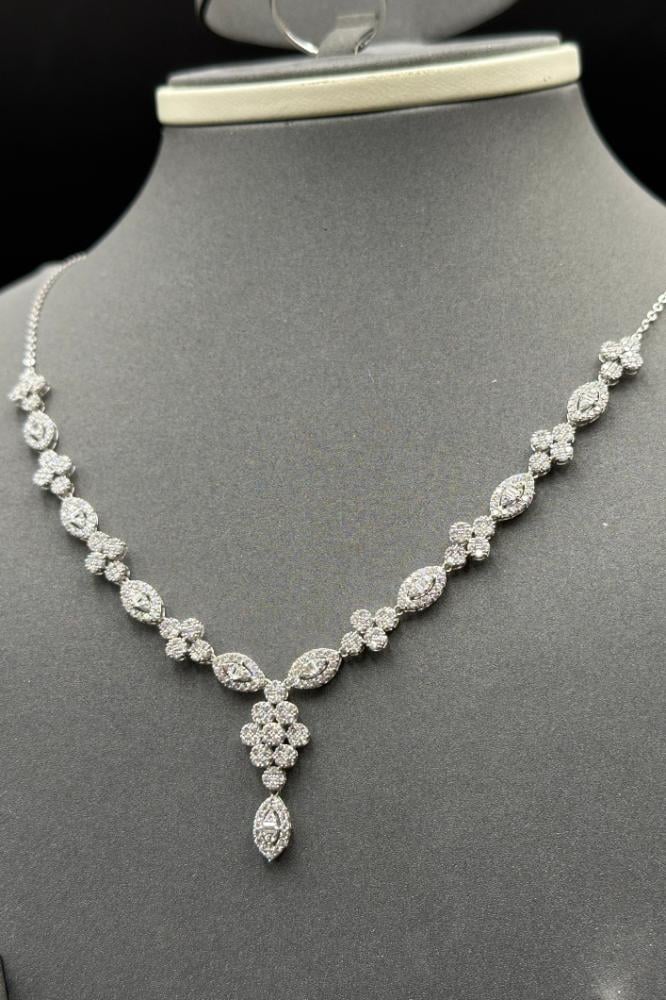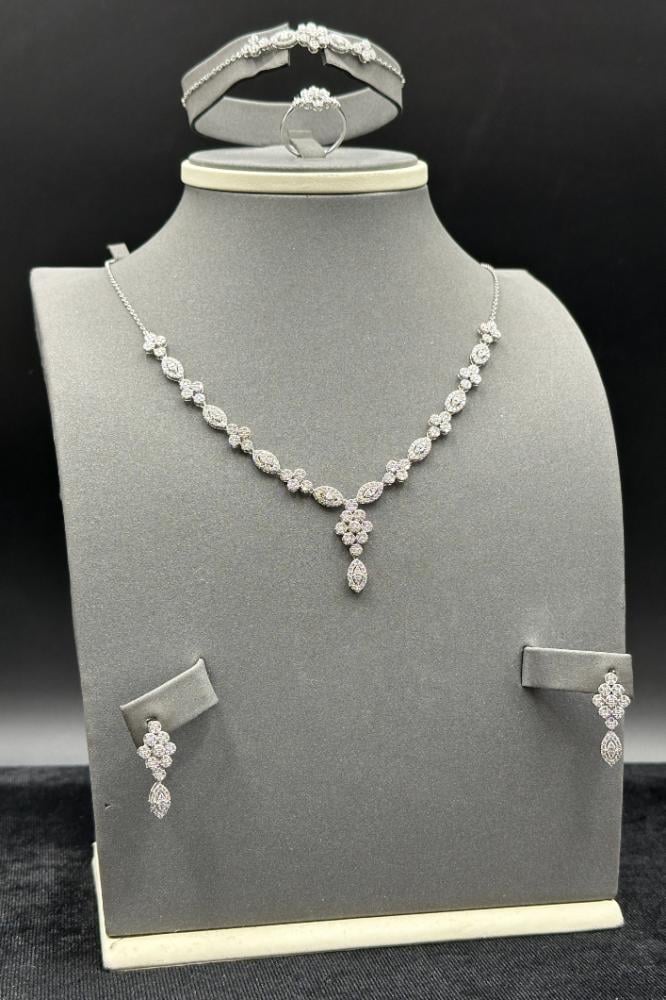 وزن 15.1 جرامعيار 18طول العقد 48 سمطول الاسوارة 18 سمطقم ذهب ابيض تصميم الماس سعر المنتج مرتبط بسعر الذهب العالمي