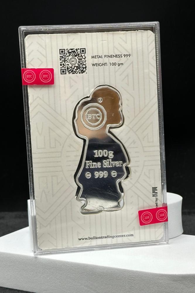 سبيكة فضة شكل وزن 100 جرام عيار 999 بي تي سي (BTC)