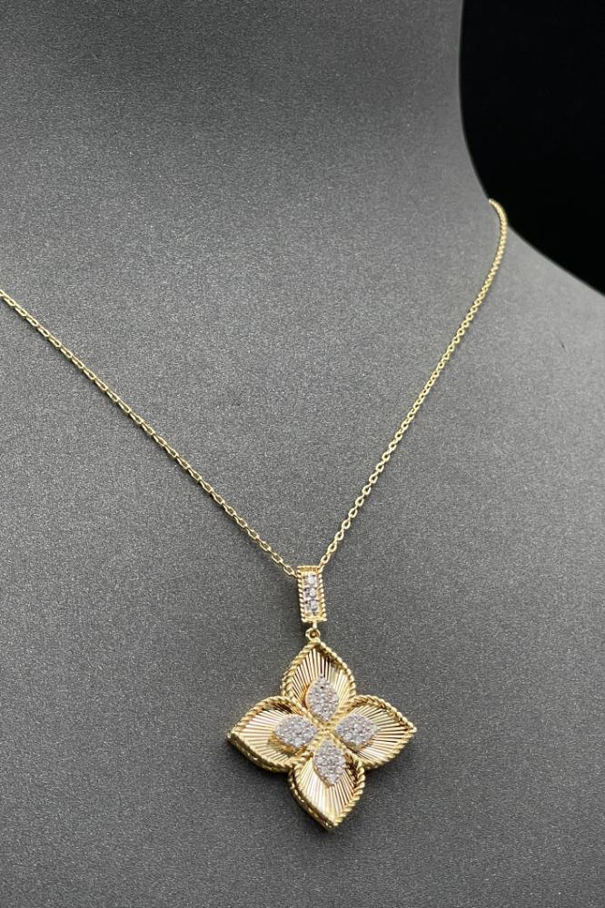 عقد وردة ذهب تصميم الماس عيار 18 وزن 5 جرام