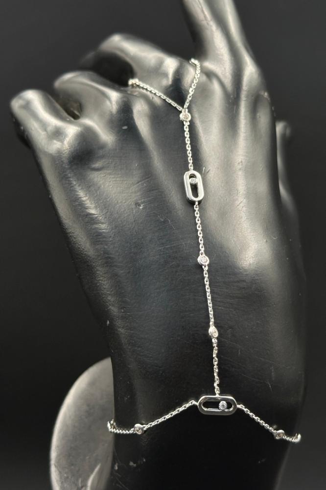 كف مستطيل ذهب ابيض تصميم الماس عيار 18 وزن 3.9 جرام
