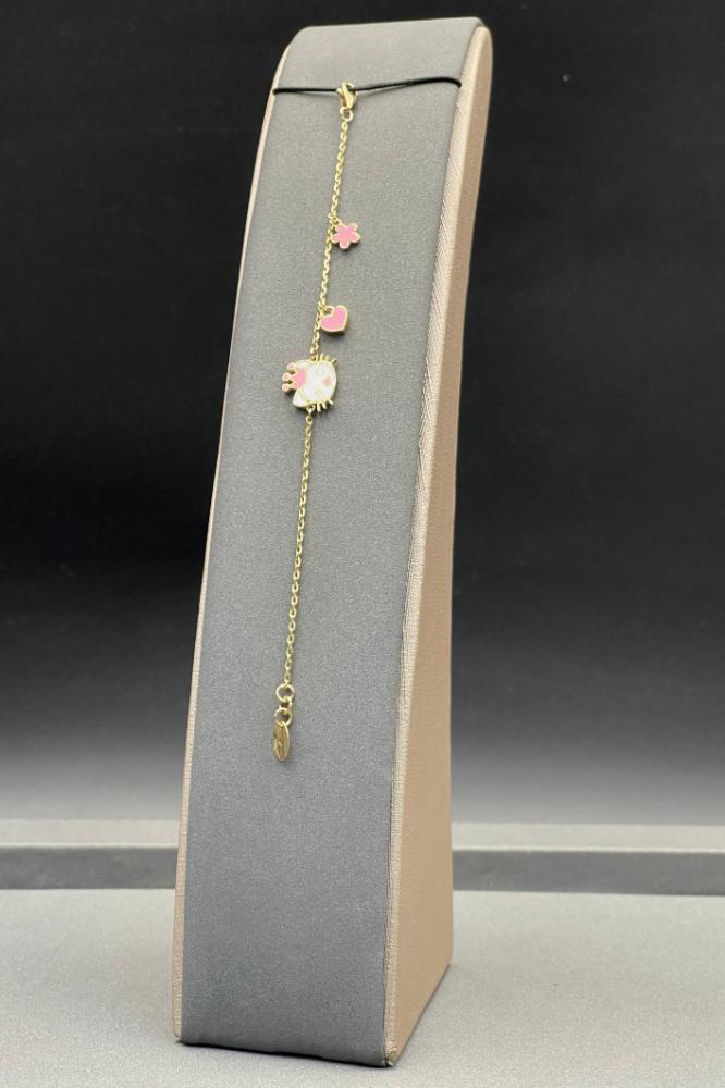 SpecificationsWeight: 3.3gKarat: 18KBracelet Length: 15cmType: Children’s Bracelet – Cat Shape with Colored Gold HeartPrice: Linked to global gold rate.