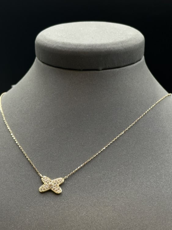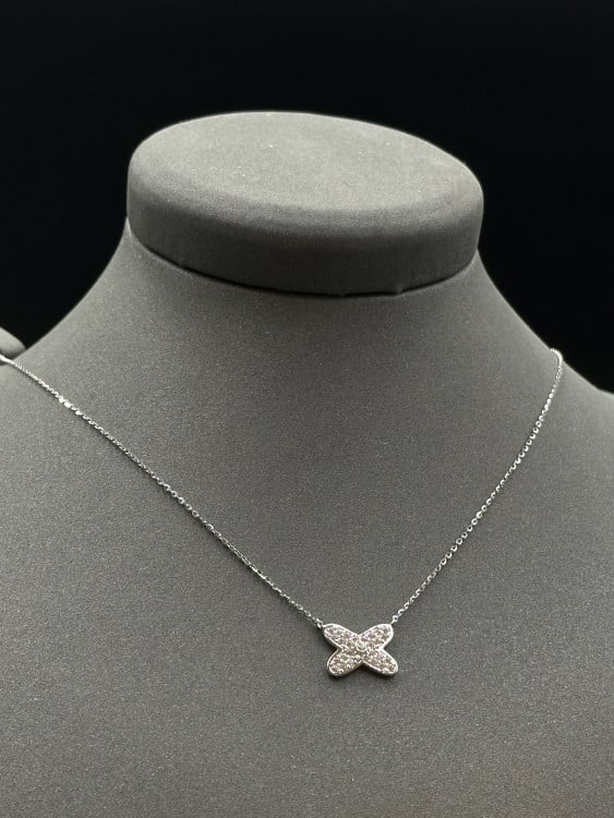 • Design: Stylish X-shaped gold necklace with diamond-inspired detailing