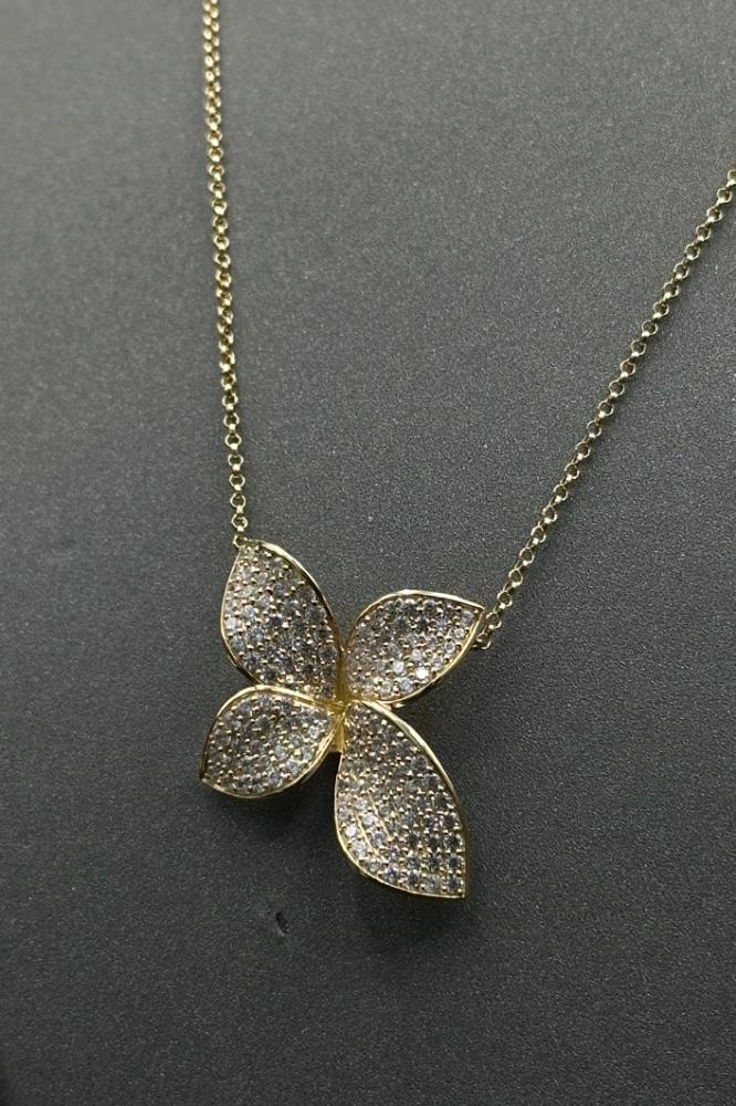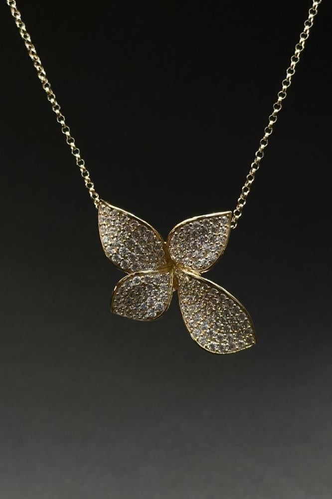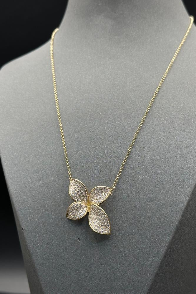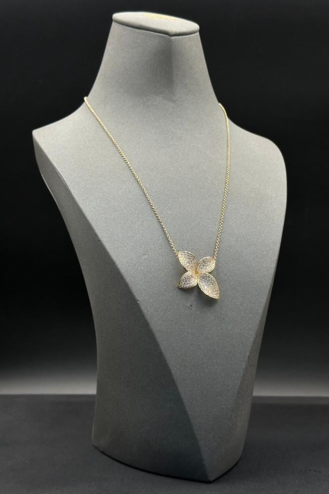 - Gold Rose Necklace with Diamond-Inspired Design