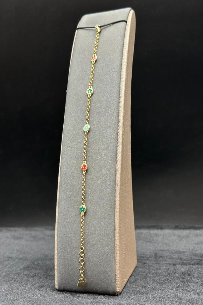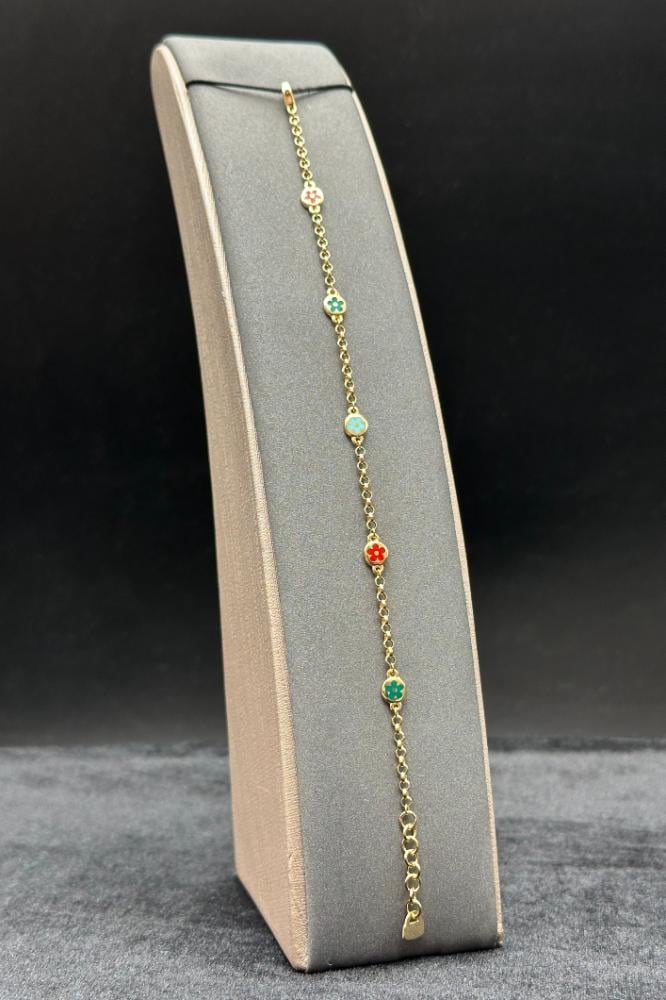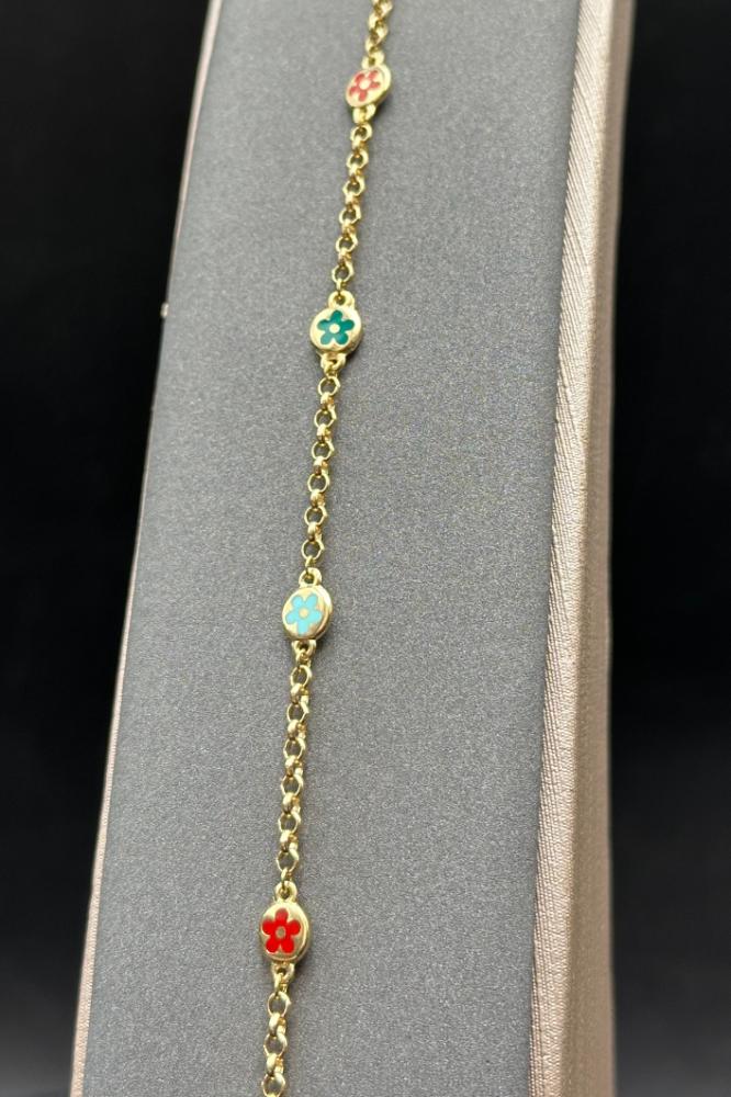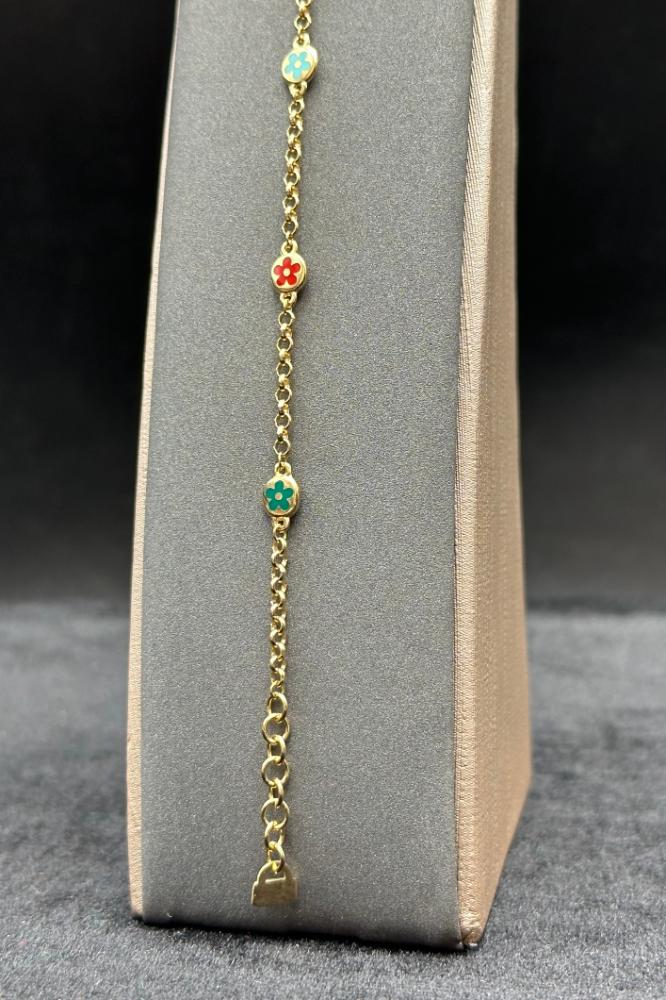 Specifications:Weight: 4.9 gramsPurity: 18KBracelet Length: 20 cmDesign: Italian Solid Gold Colored Roses BraceletPrice: Linked to the global gold price.