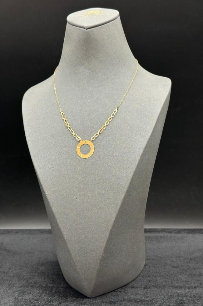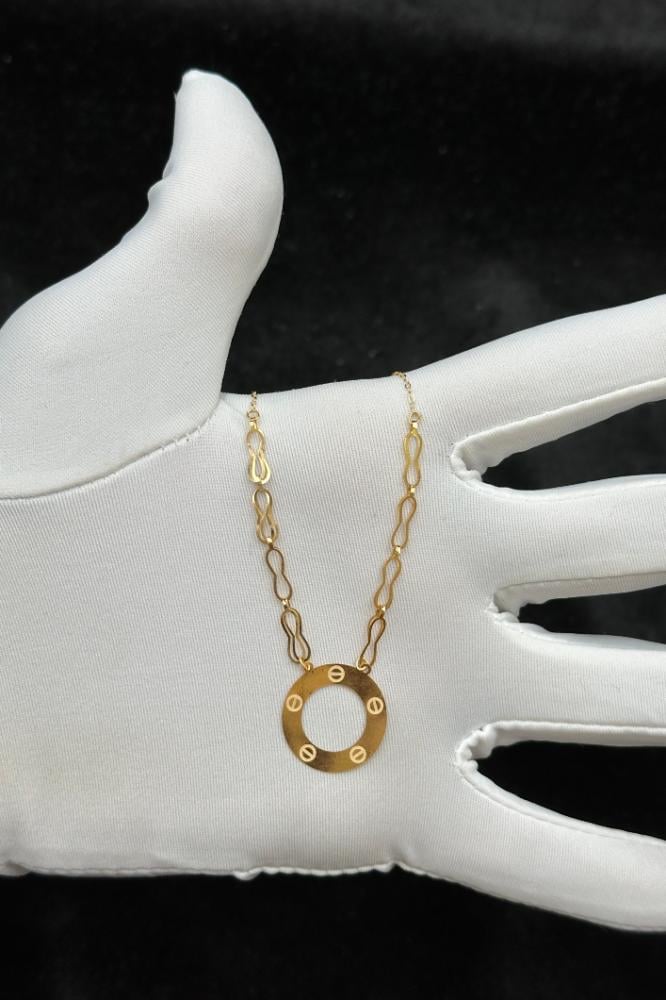 Specifications:Weight: 1 gramPurity: 21KNecklace Length: 42 cmDesign: Round necklace in pure goldPrice: Linked to the global gold rate.