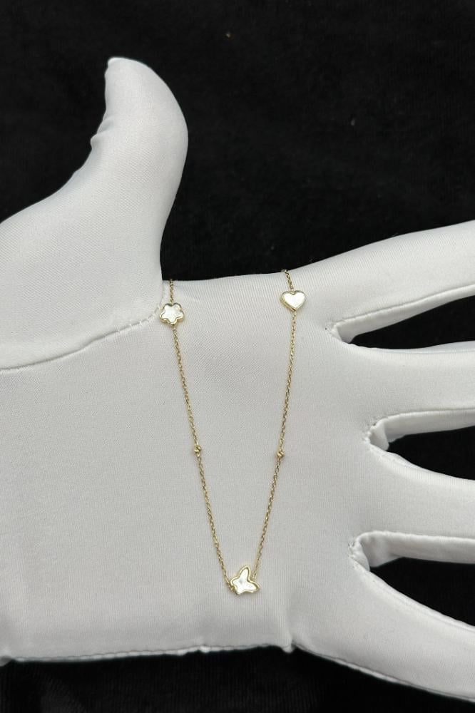 - شال قلب و فراشة و وردة ذهب مع صدف ابيض