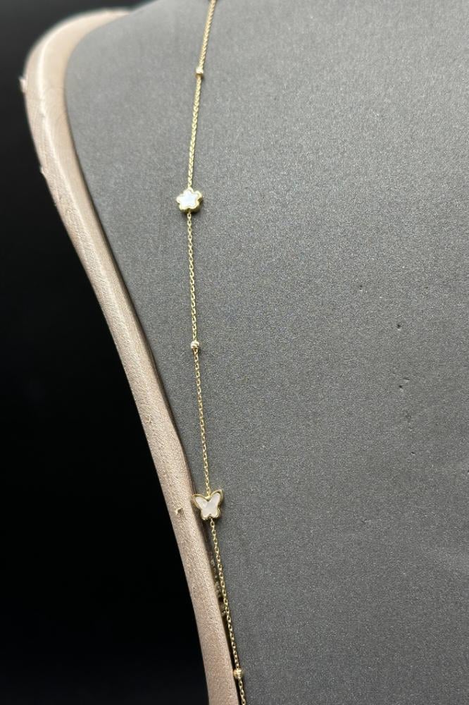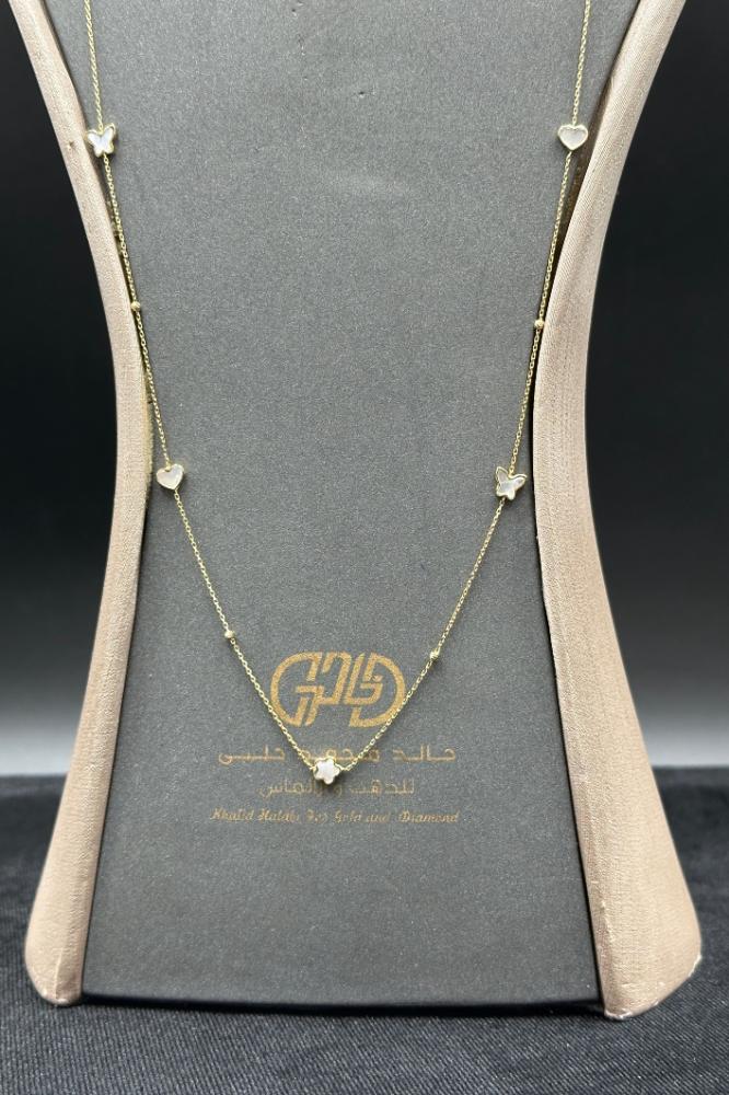 شال قلب و فراشة و وردة ذهب مع صدف ابيض عيار 18 وزن 4 جرام