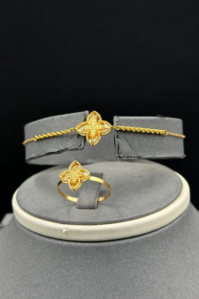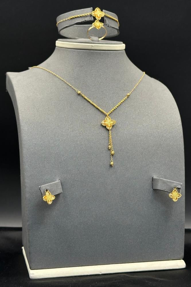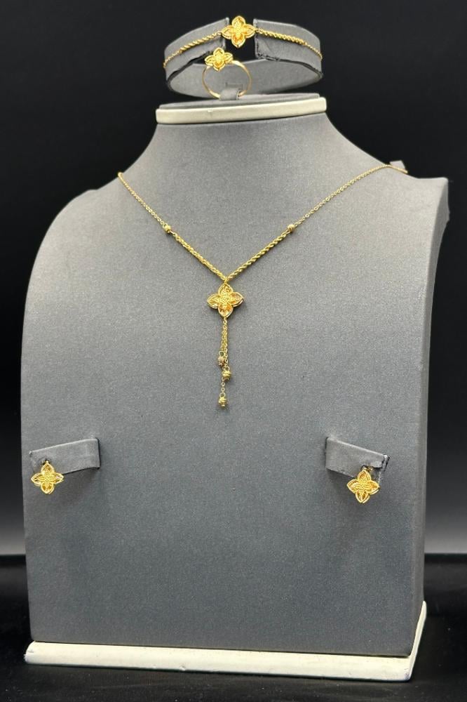 وزن 8 جرامعيار 21 طول العقد 50 سمطول الاسوارة 18 سمطقم زهرة ذهب صافي سعر المنتج مرتبط بسعر الذهب العالمي
