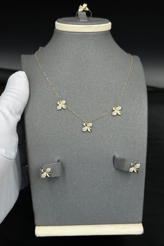 SpecificationsWeight: 2.7gKarat: 18KType: Children’s Set – Gold Rose – Diamond DesignPrice: Linked to global gold rate.