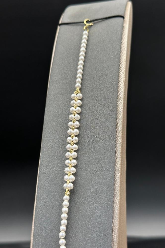 اسوارة لؤلؤ مع ذهب بالمنتصف