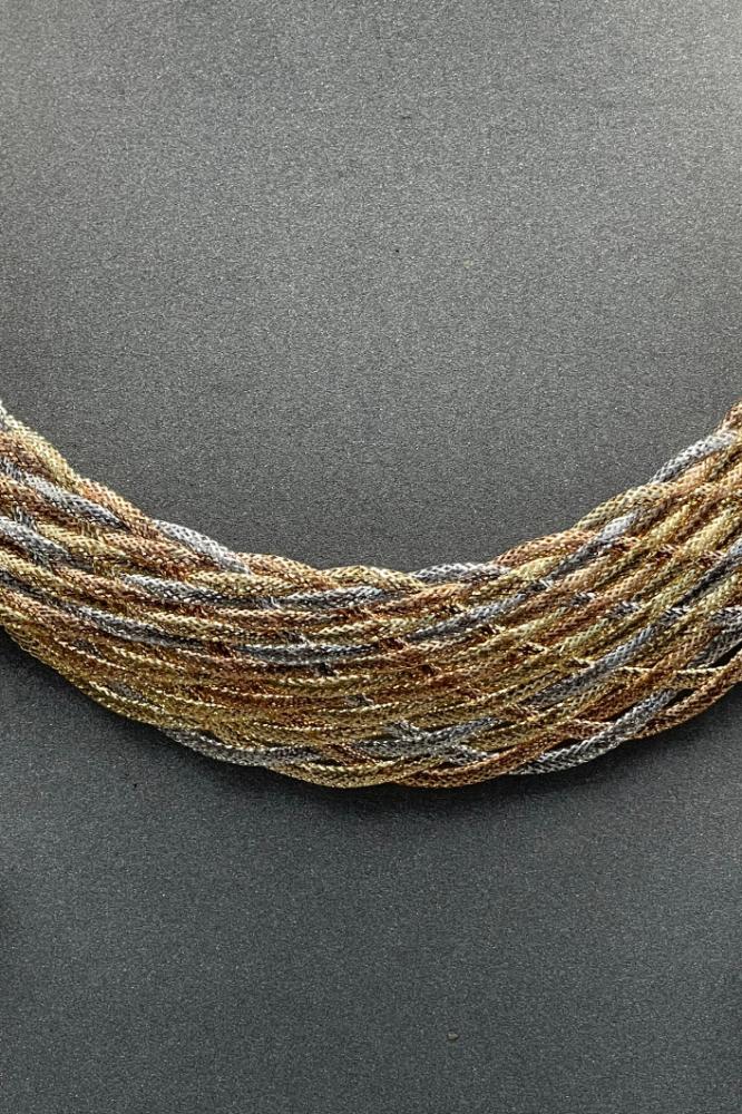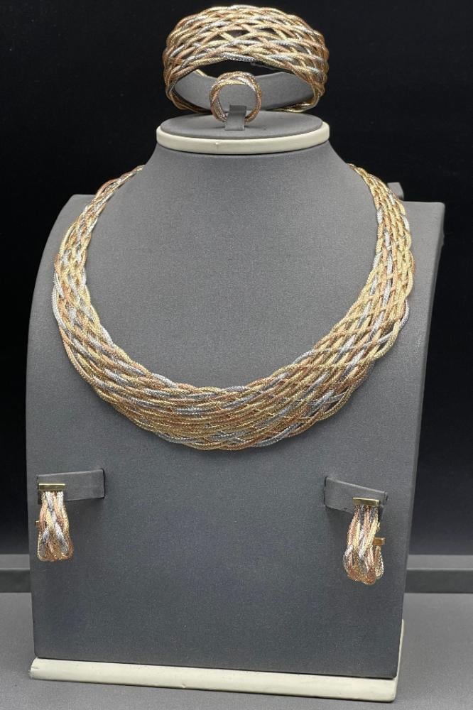 Specifications:Weight: 27.9 gramsPurity: 18KType: Italian Solid Gold Fabric SetNote: Price is linked to the global gold rate.