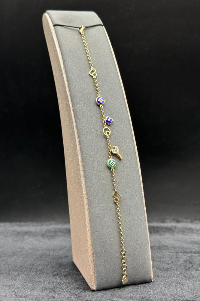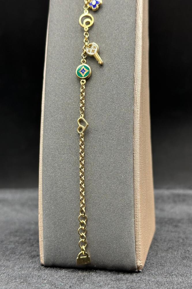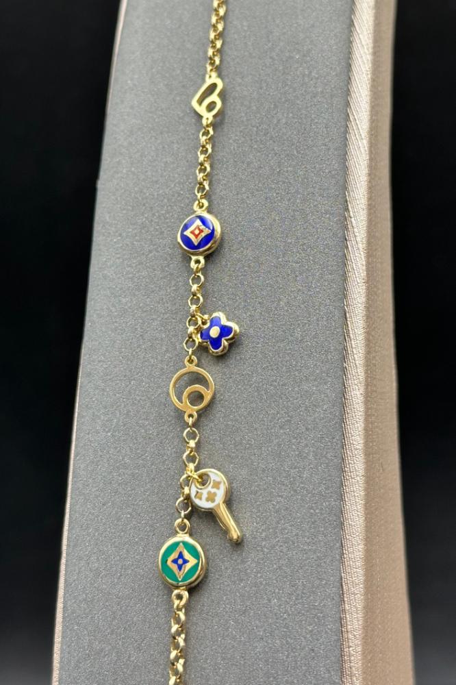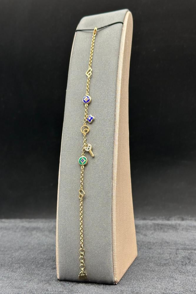Specifications:Weight: 6.9 gramsPurity: 18KBracelet Length: 20 cmDesign: Heart with Key, Italian Colored GoldPrice: Linked to the global gold price.