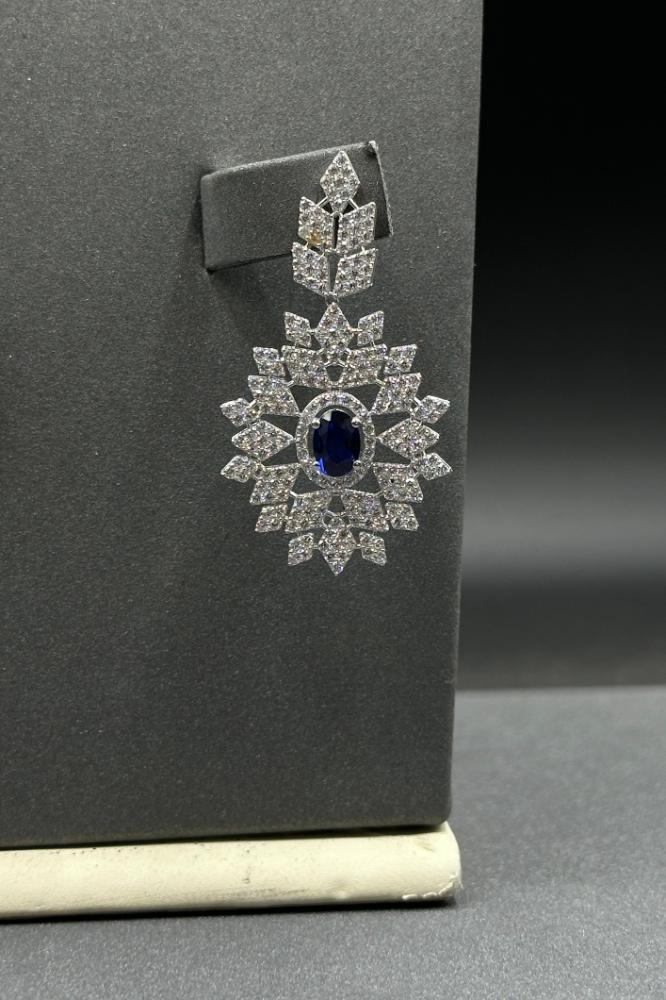 ✨ طقم ذهب أبيض فخم بتصميم ألماسي مع فص كحلي عيار 18 بوزن 56.8 جرام 🌟