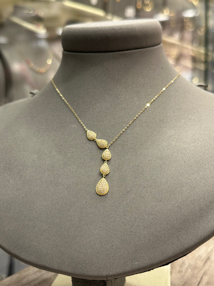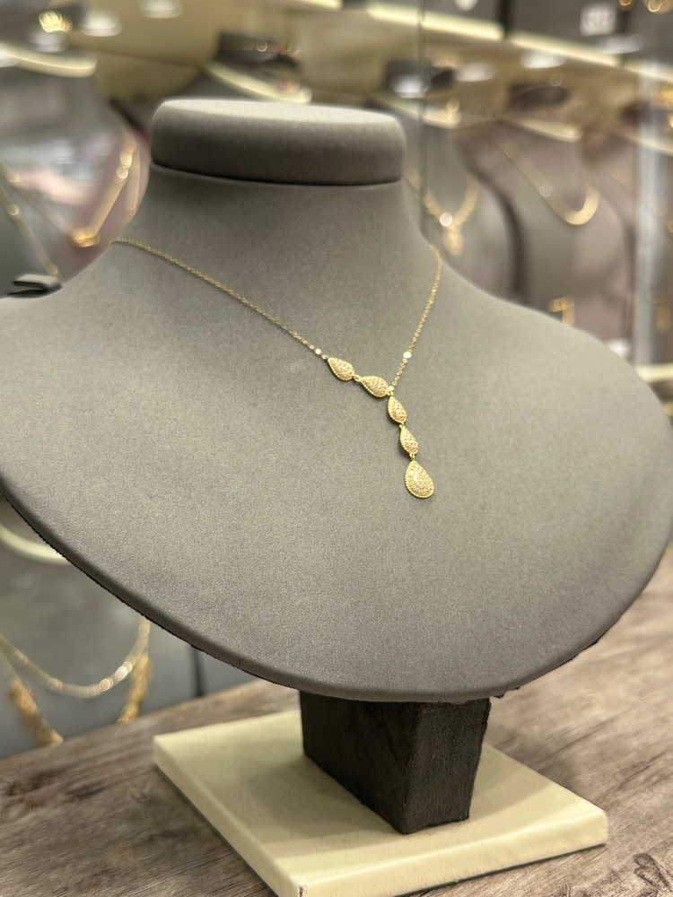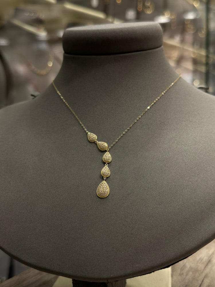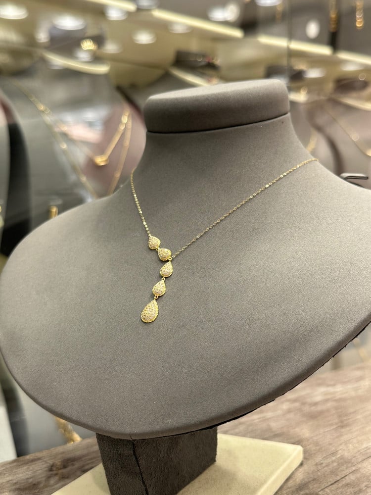 تالقى مع عقد ذهبي 5 دمعات نازلة تصميم فاخر وراقى
