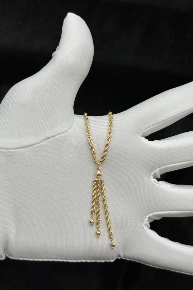 Specifications Weight: 2.1 to 2.2 grams Karat: 18 Necklace length: 54 cm Braided drop pure gold necklace Product price is linked to the global gold price.