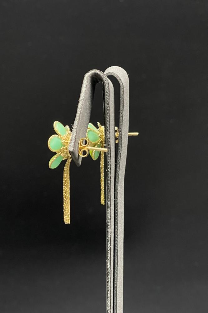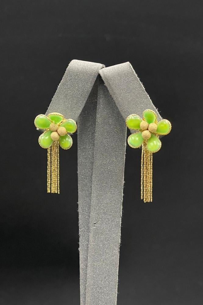 Specifications:Weight: 3.4 gramsKarat: 18KType: Rose Earrings with Green Shell – GoldPrice: Linked to the global gold price.