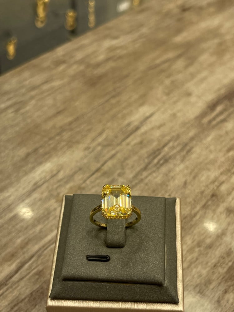 خاتم فص فانسي ذهب تصميم الماس عيار 18 وزن 4.9 الى 5 جرام