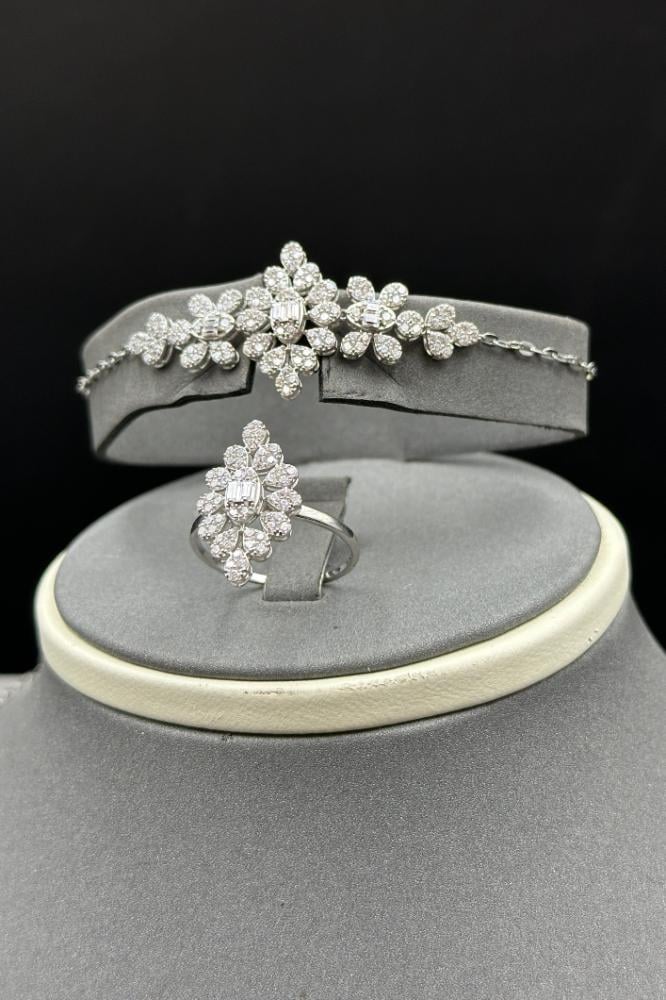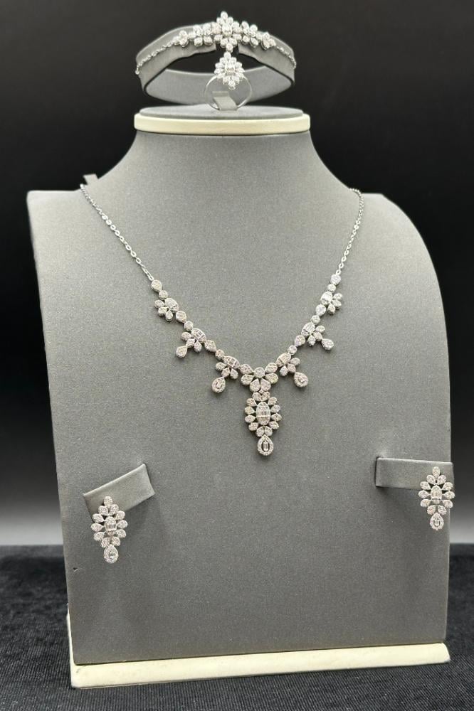 طقم ذهب ابيض تصميم الماس عيار 18 وزن 18.1 جرام