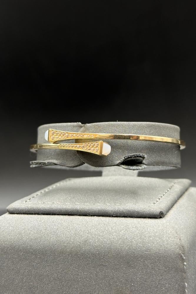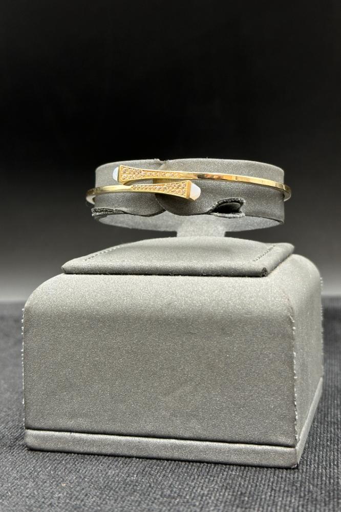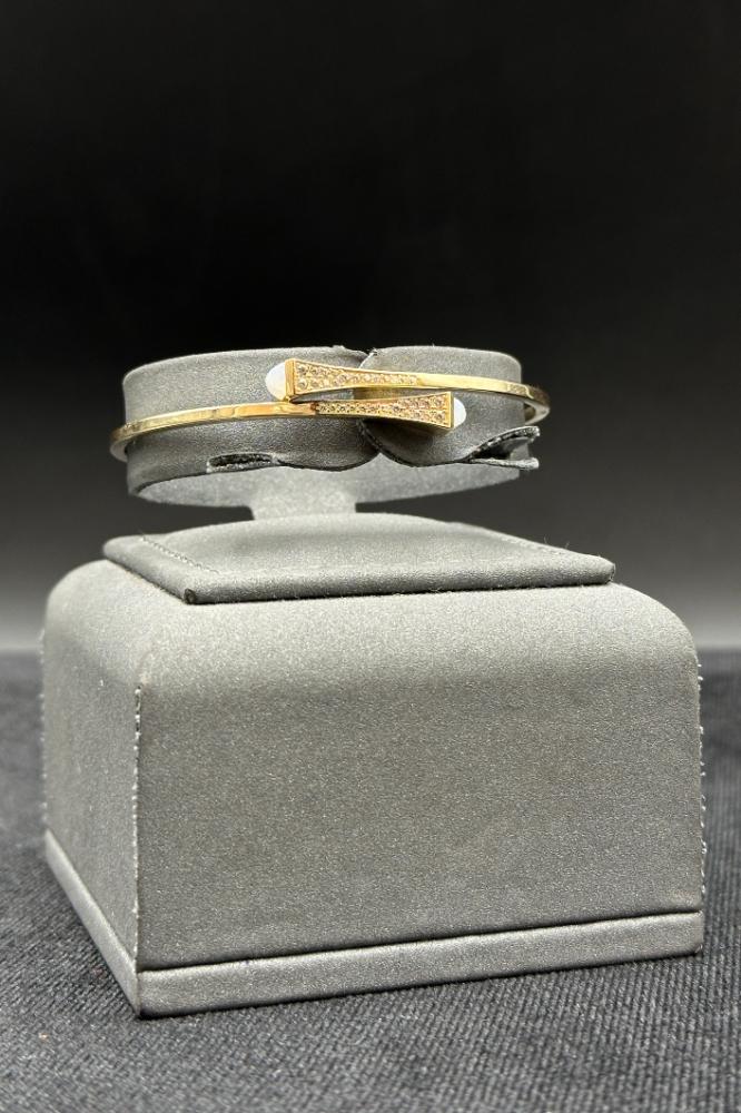 Specifications Weight: 6.3 g Purity: 18K Bracelet size: (15) Gold Bracelet with White Stone & Diamond Design The product price is linked to the global gold price.