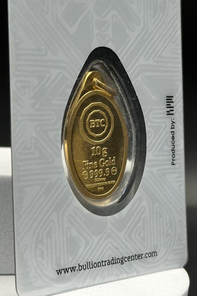 اقتني سبيكة ذهب (10 جرام) عيار 24 مع عروة، واستمتع بقطعة ذهبية خالصة تجمع بين الجمال والقيمة العالية.