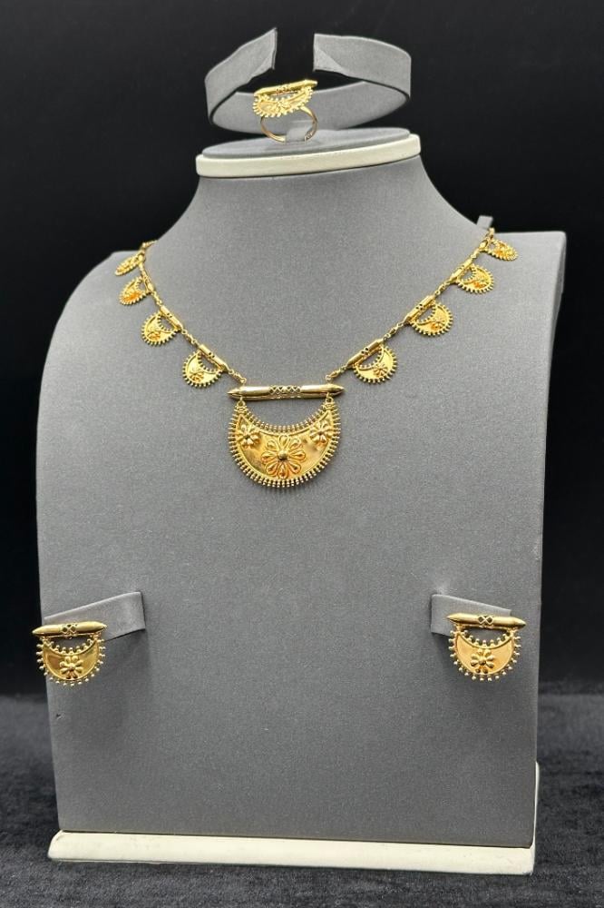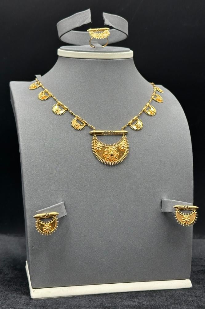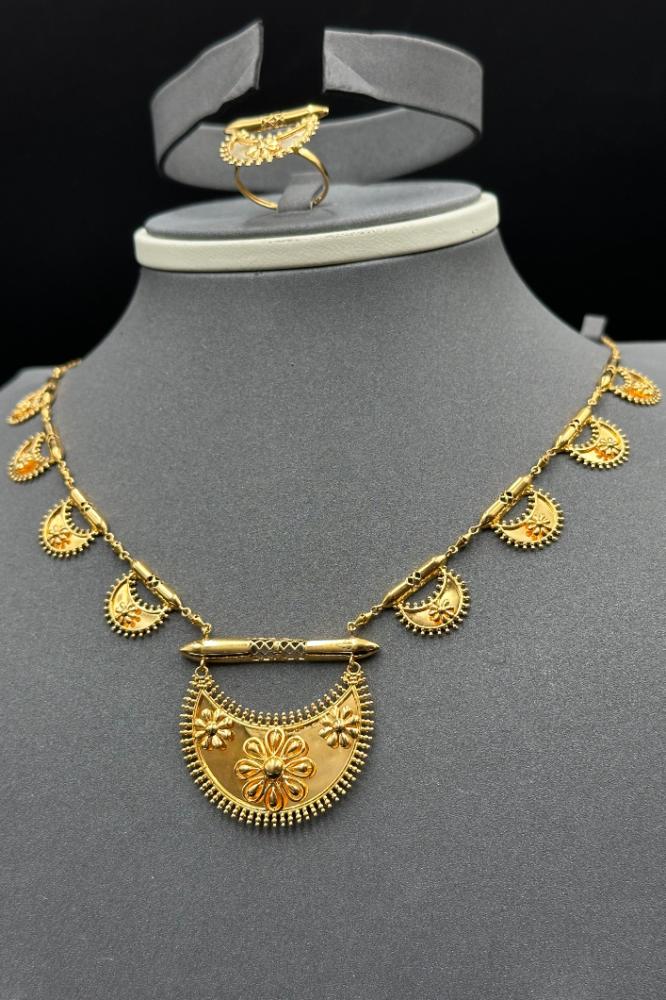 Specifications:Weight: 21.3 grams21 karatNecklace length: 44 cmPure gold setPrice is linked to the global gold price.