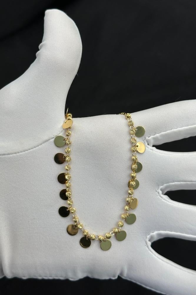 Product Details:Weight: 8.7 gramsPurity: 18KChain Length: 46 cmDesign: Pure Gold Circles NecklacePrice: Linked to the current global gold price .