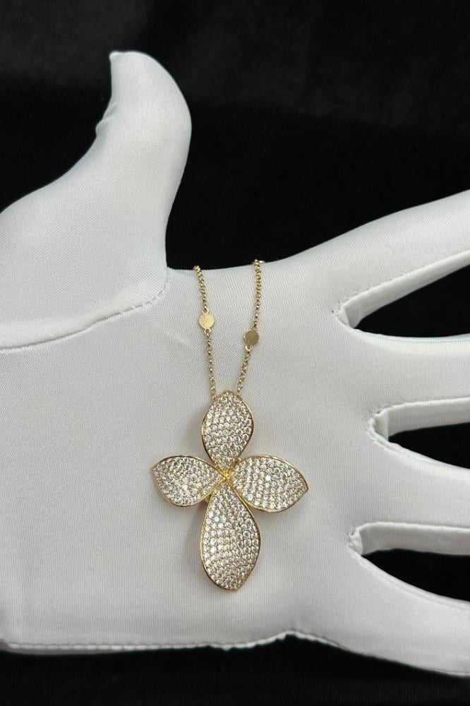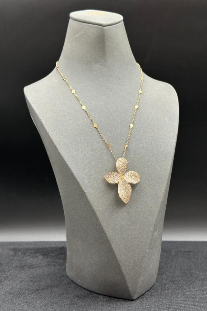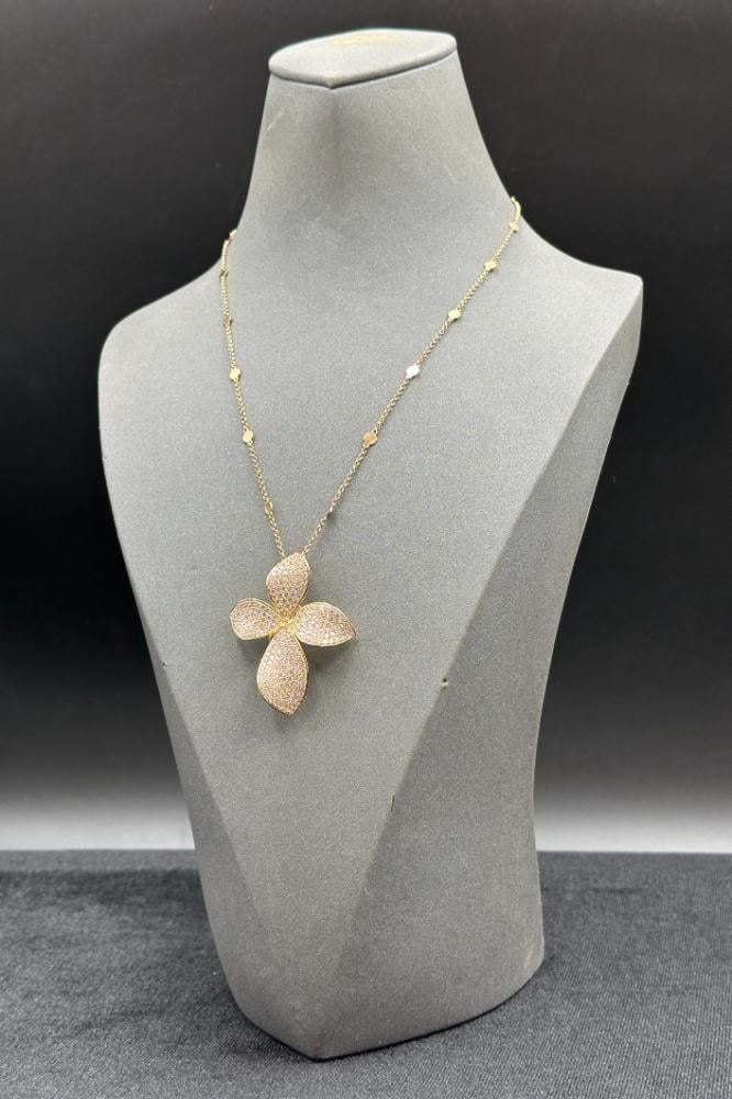 عقد وردة ذهب تصميم الماس عيار 18 وزن 11.05 جرام