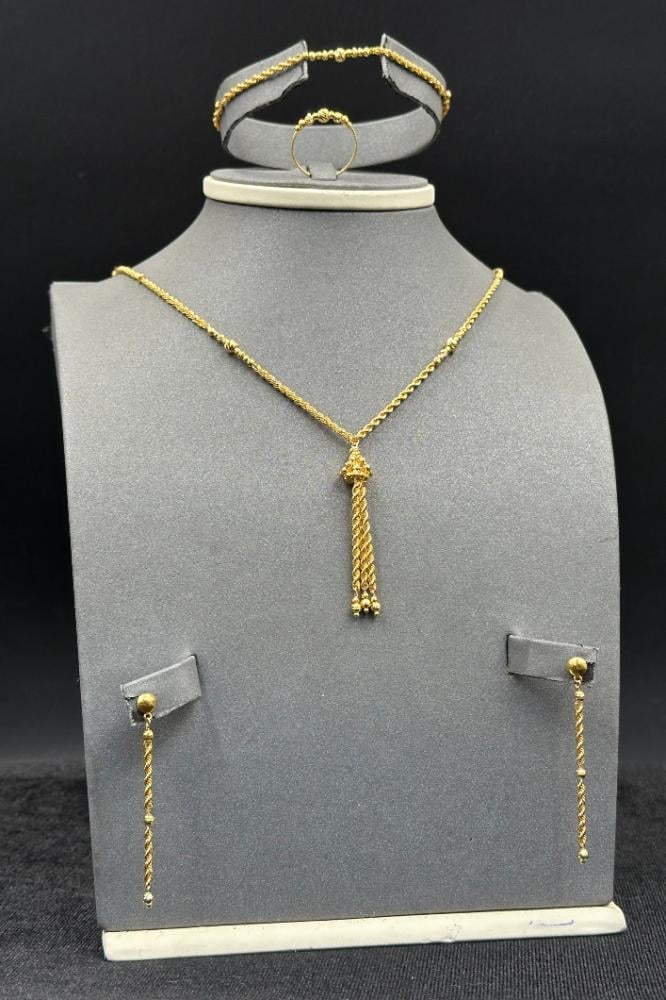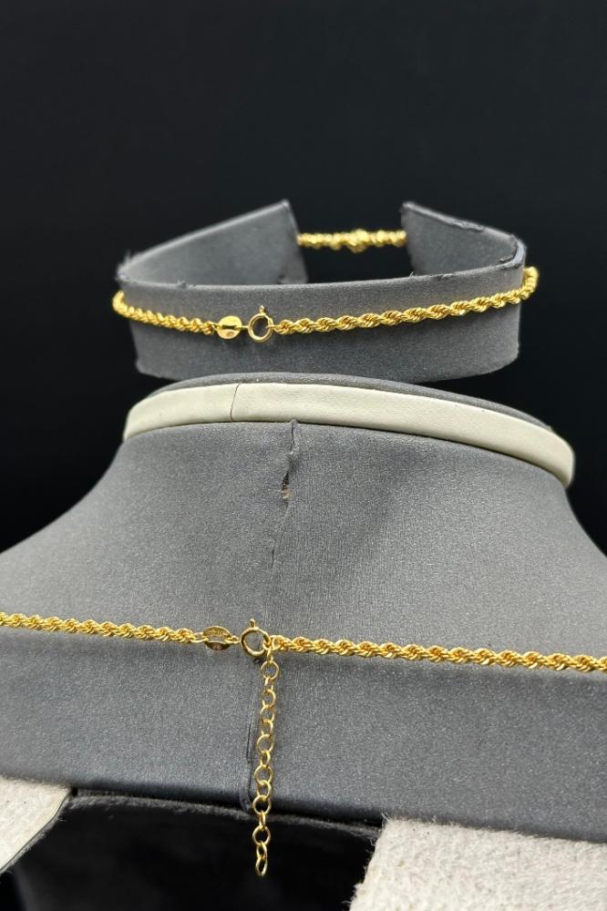وزن 11 جرامعيار 21طول العقد 58 سمطول الاسوارة 19 سمطقم كور نازل ذهب صافيسعر المنتج مرتبط بسعر الذهب العالمي