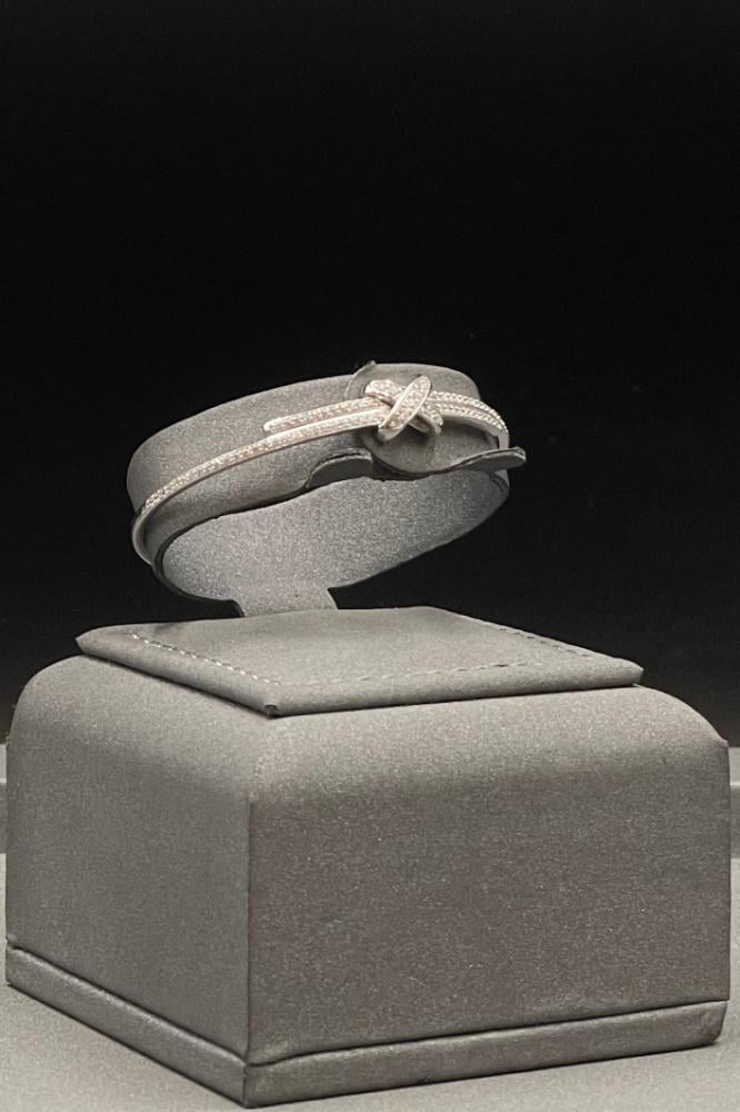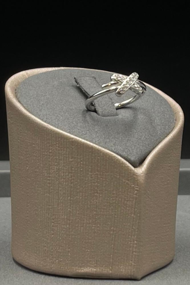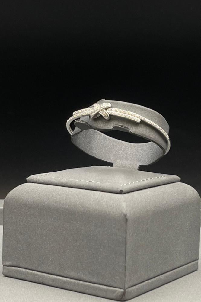 اسوارة مع خاتم ذهب ابيض عيار 18 شكل اكس تصميم الماس