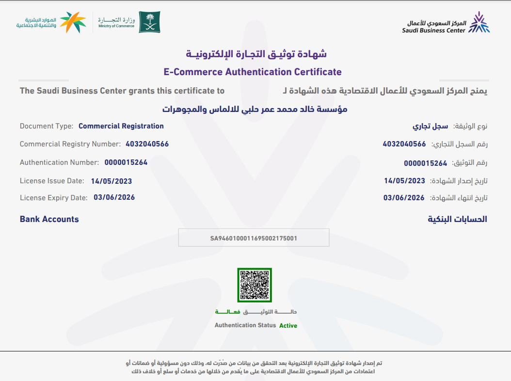 شهادة توثيق المتجر وتسجيل العلامة التجارية