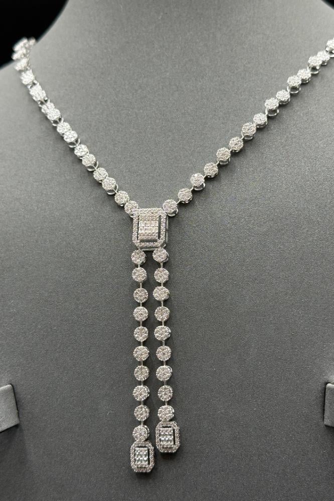 طقم ذهب ابيض تصميم الماس عيار 18 وزن 22.3 جرام